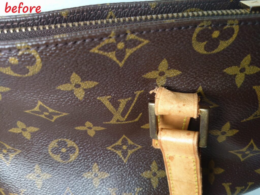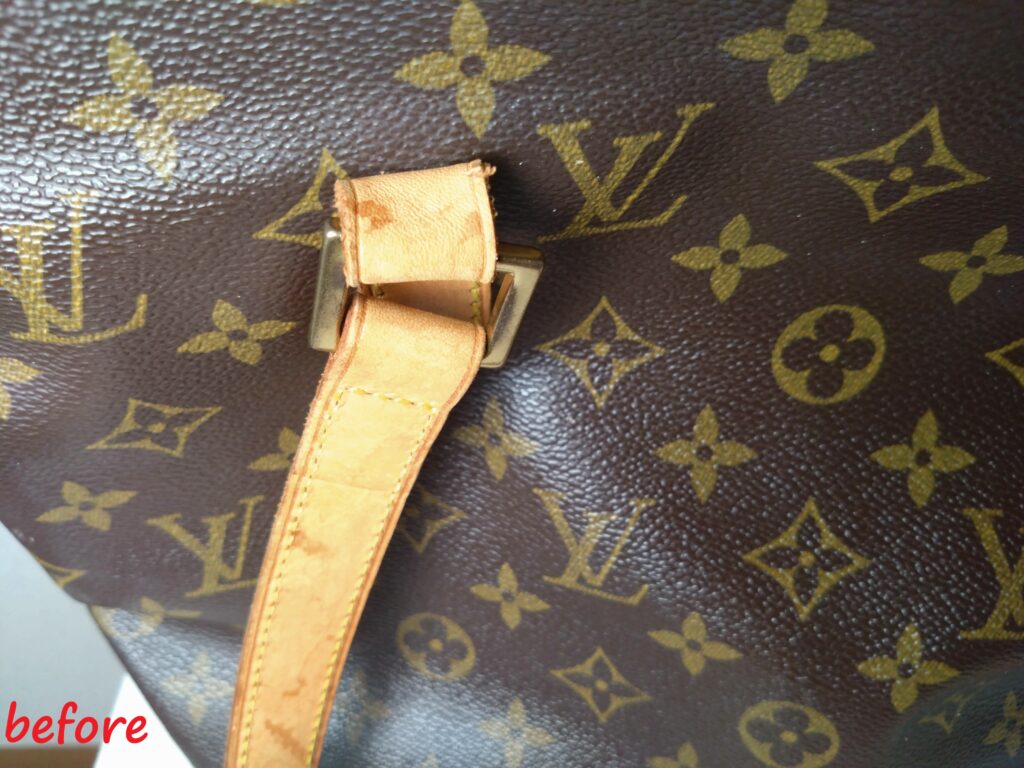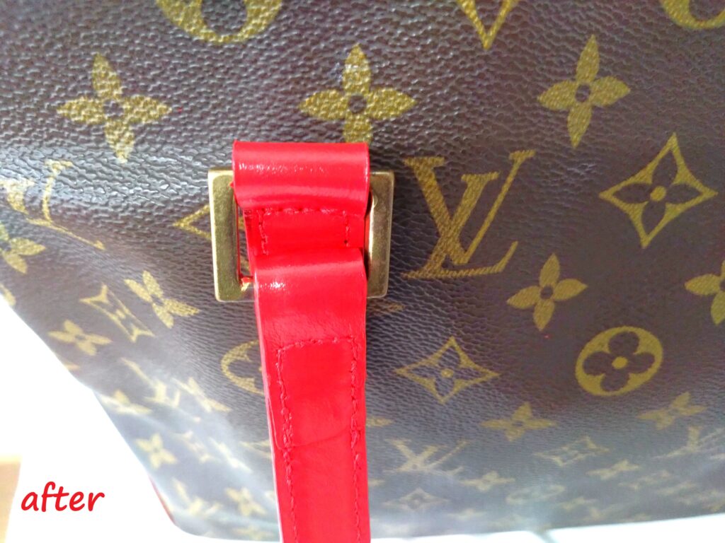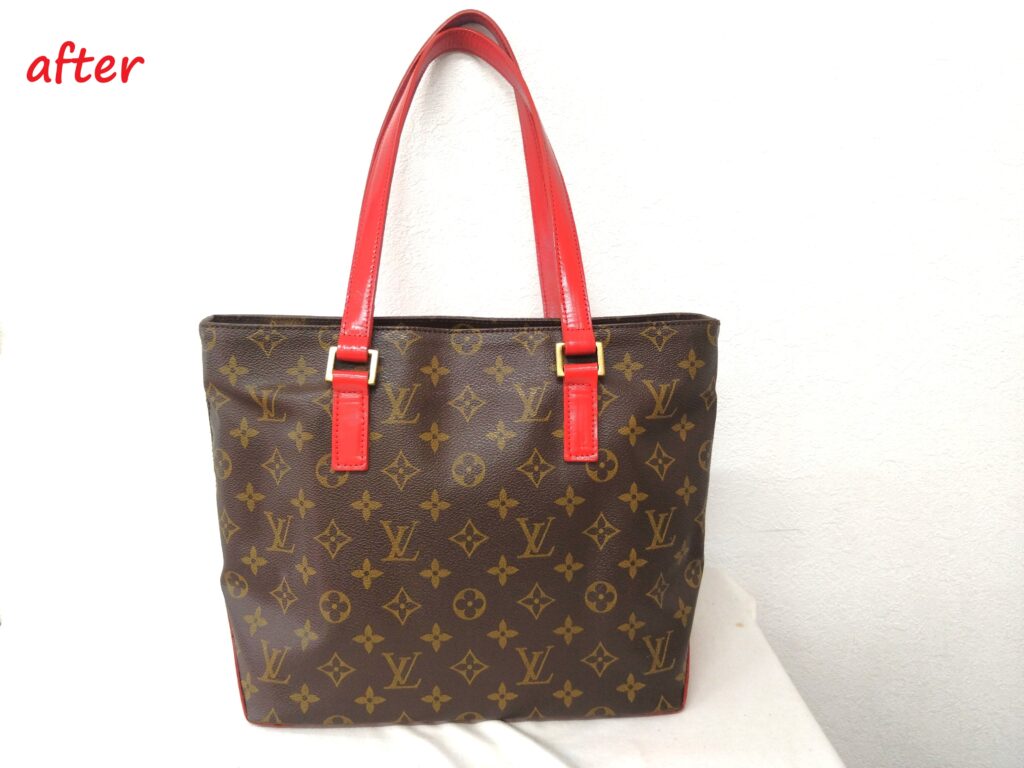 バッグ修理 Louis Vuitton カバ・ピアノ トートバッグ 持ち手革 持ち手根元の革 交換 カラーチェンジ 施工修理