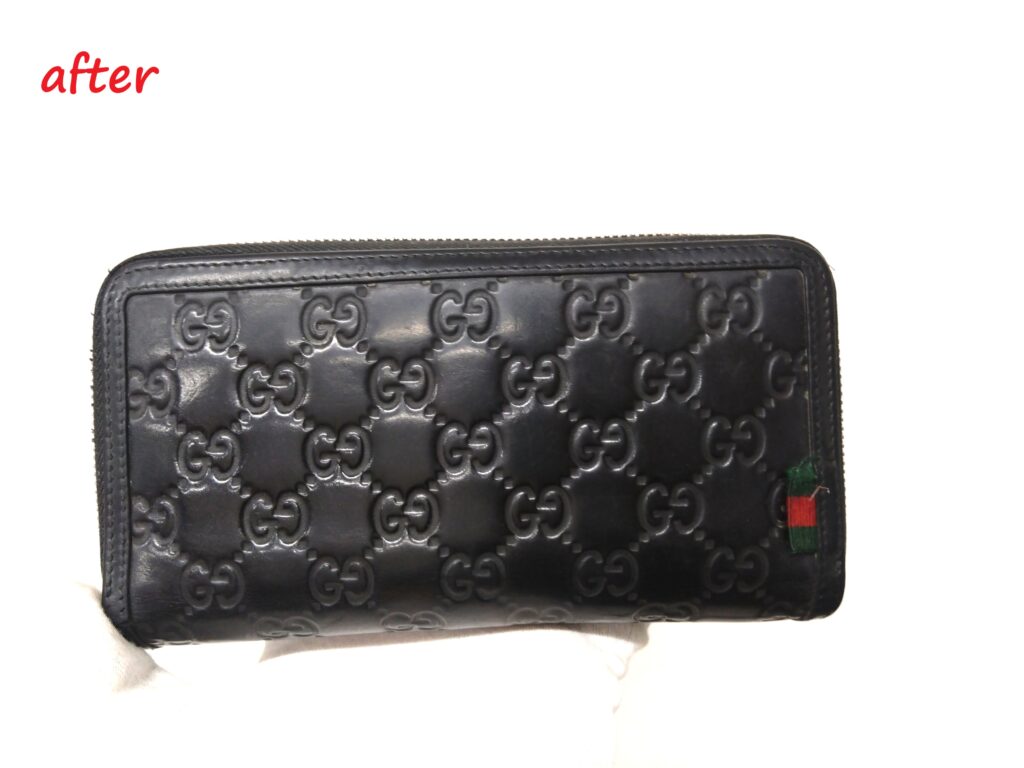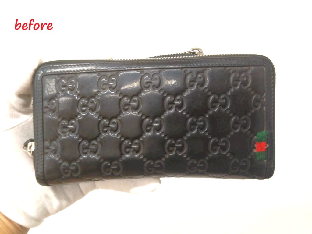 財布修理 GUCCI グッチシマ ダブルファスナー 長財布 スライダー交換 引手製作 クリーニング 施工
