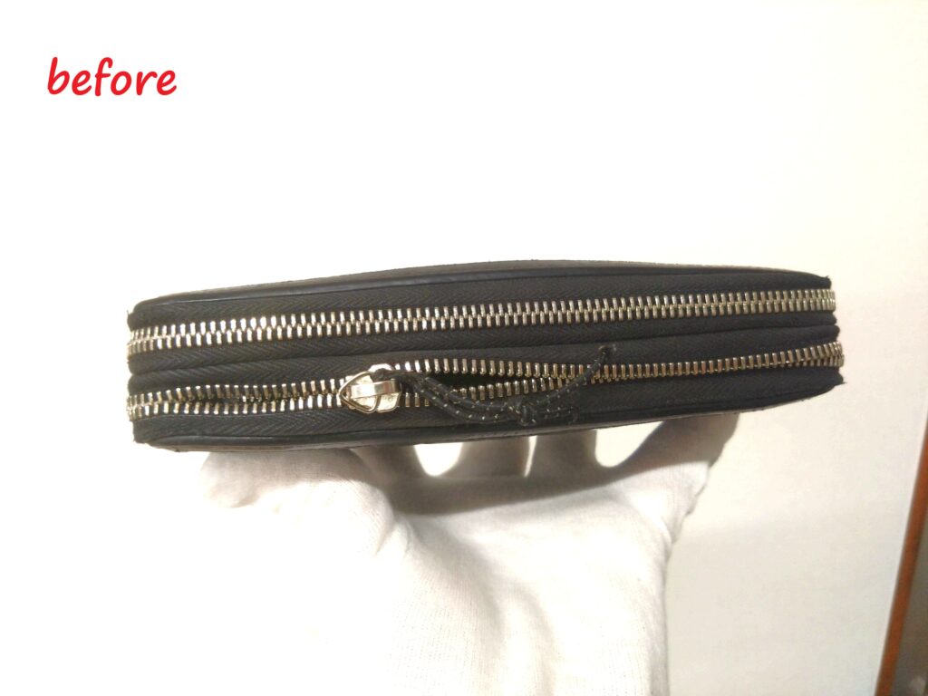 初めて財布を拝見した時、ファスナーが閉まらなくなっていましたが、ファスナーの生地に破れもない状態でした。
