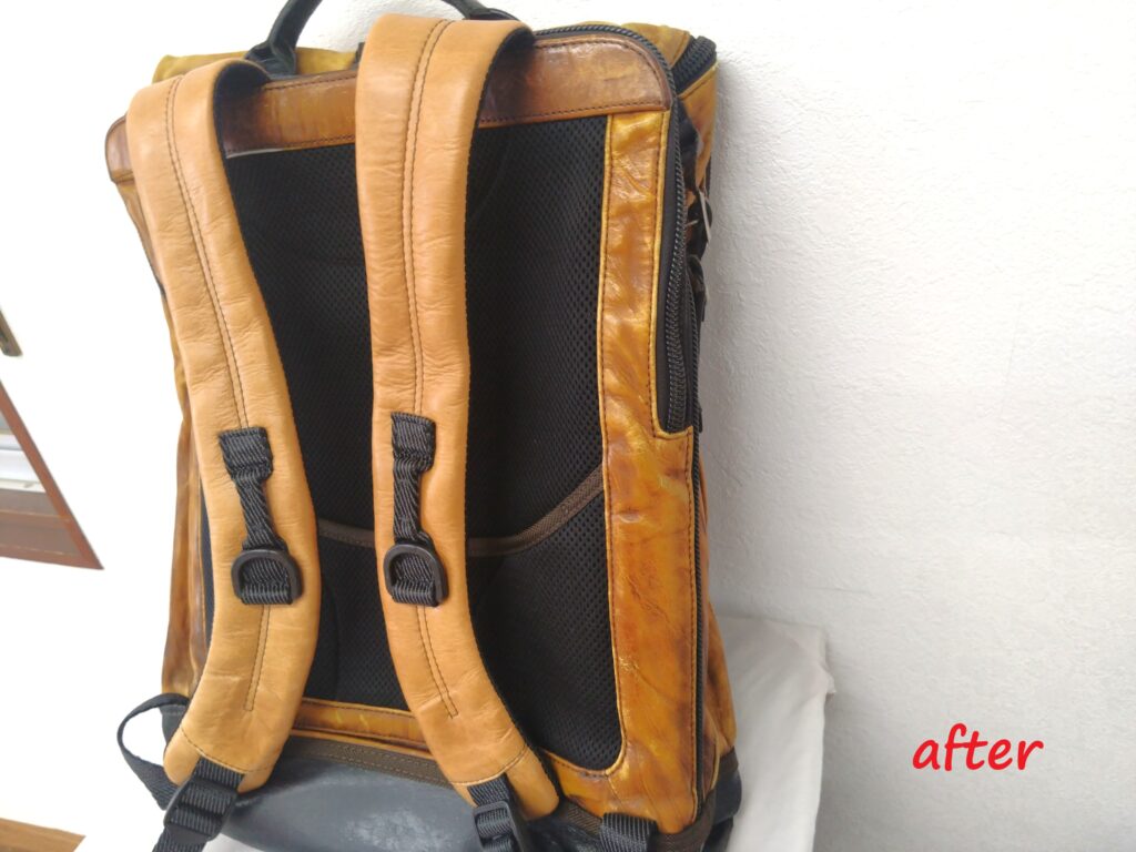 革研究所堺店は、バックパックの肩ベルト以外にもバックパックのクリーニング施工(クリーニング+保湿ケア)もさせていただいてま~す!