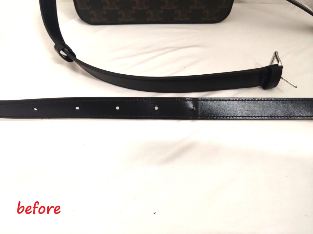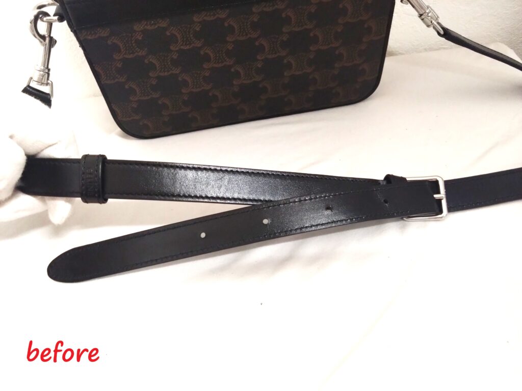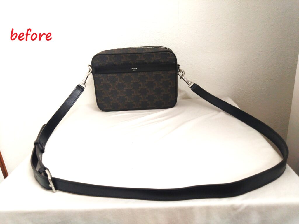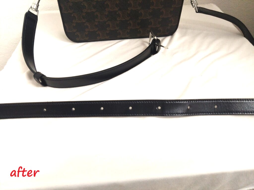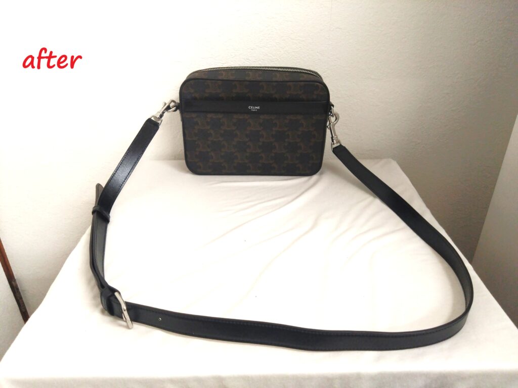 バッグ修理 CELINE スモールメッセンジャー ショルダーバッグ サルカン革調整 ショルダーベルト 穴追加 施工