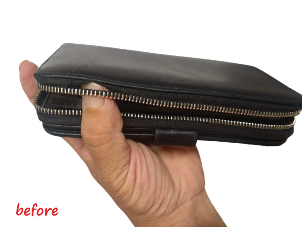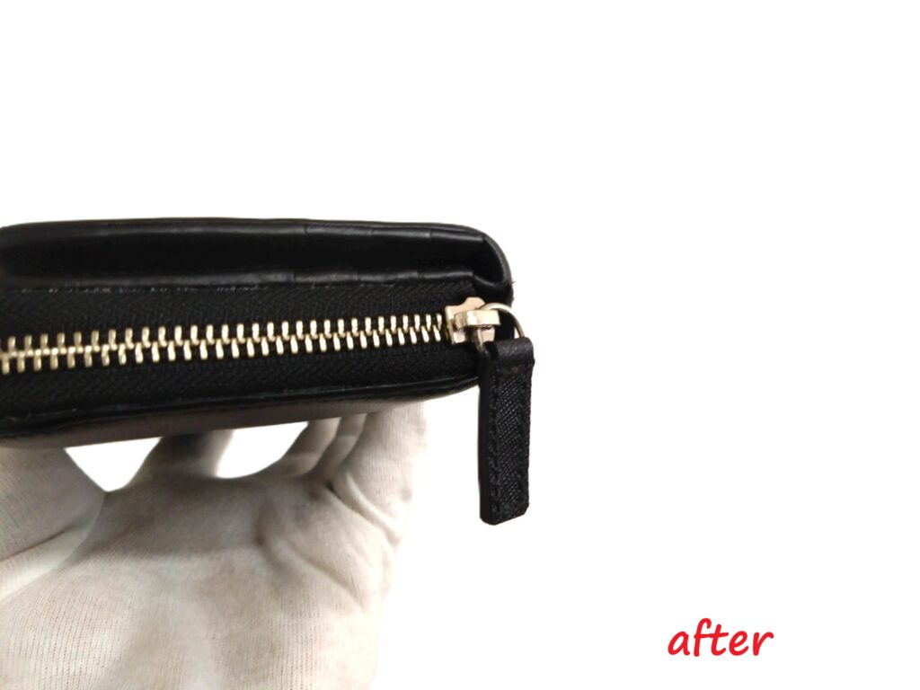 財布修理 ヴァレクストラ 二つ折り長財布 ファスナー交換 引手製作 染め直し修理