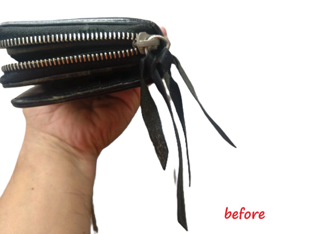 財布を初めて拝見した時、財布の色褪せとファスナーの生地の破れていました。