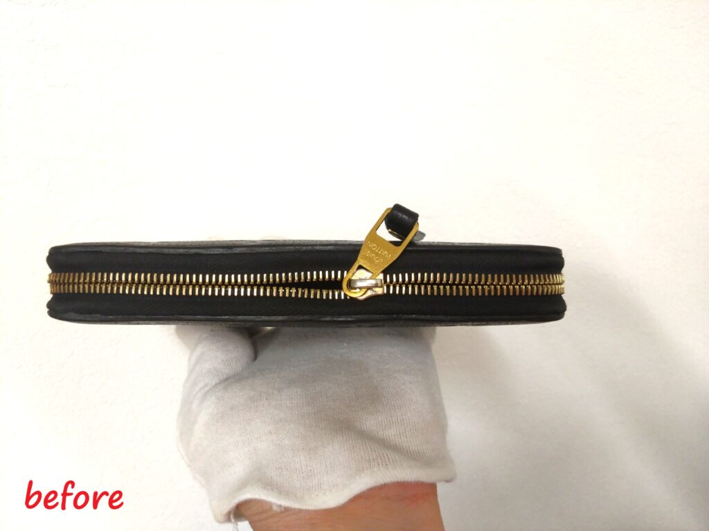 財布修理 Louis Vuitton モノグラム アンプラントレザー ジッピー・ウォレット スライダー交換 施工修理