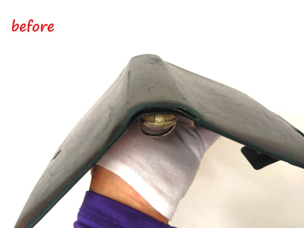 数種類ある補修剤の中から革の捲れている箇所とスレ傷の程度や傷の深さによって最適な補修剤を選定し補修します。