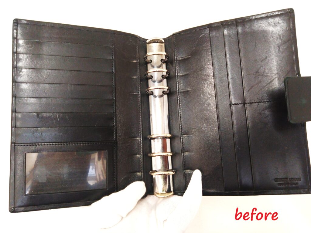 ★ジョルジオ アルマーニ 手帳カバー スレ傷補修 革捲れ補修 染め直し修理★