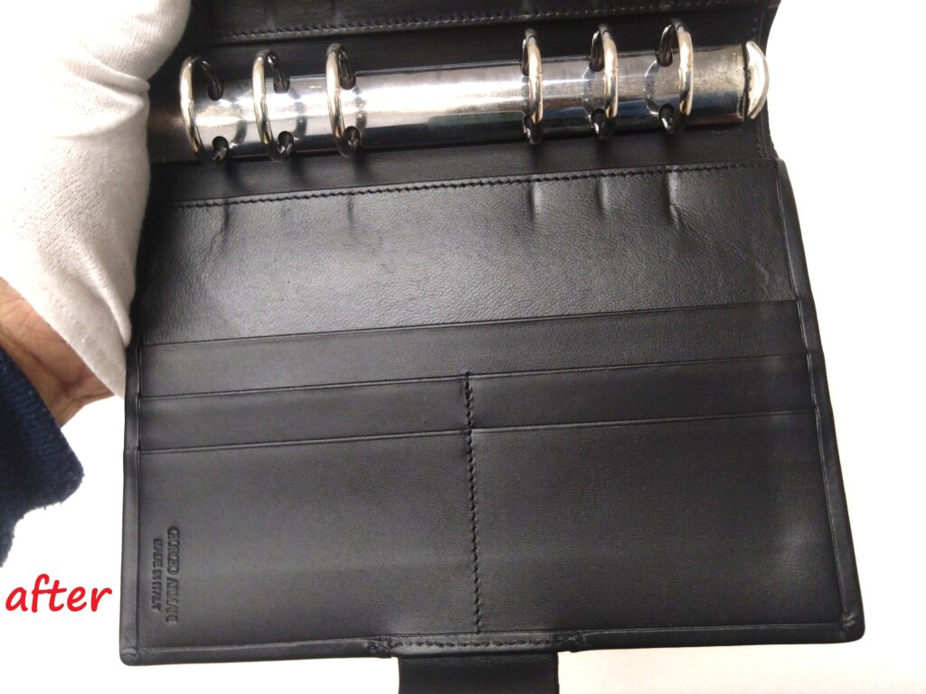 スレ傷補修&革の捲れ補修&染め直し!ジョルジオ アルマーニ 手帳カバーが綺麗に生まれ変わりましたー!(^^)!