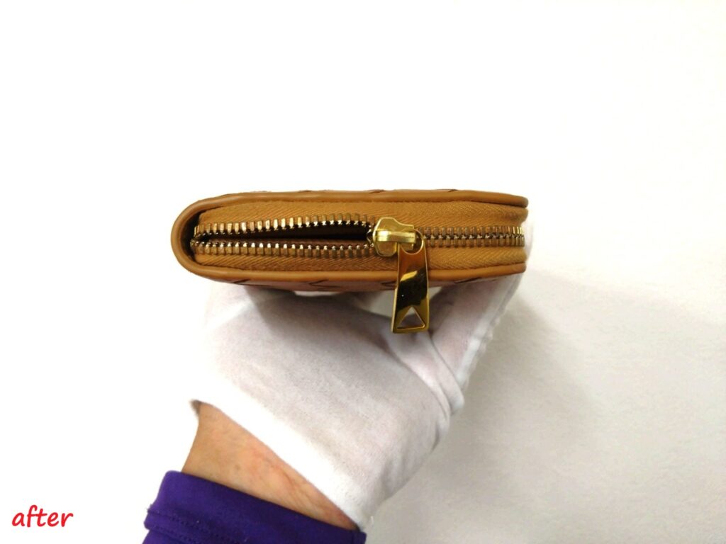 財布修理 ボッテガ・ヴェネタ イントレチャート ラウンドファスナー 長財布 スライダー 染め直し修理