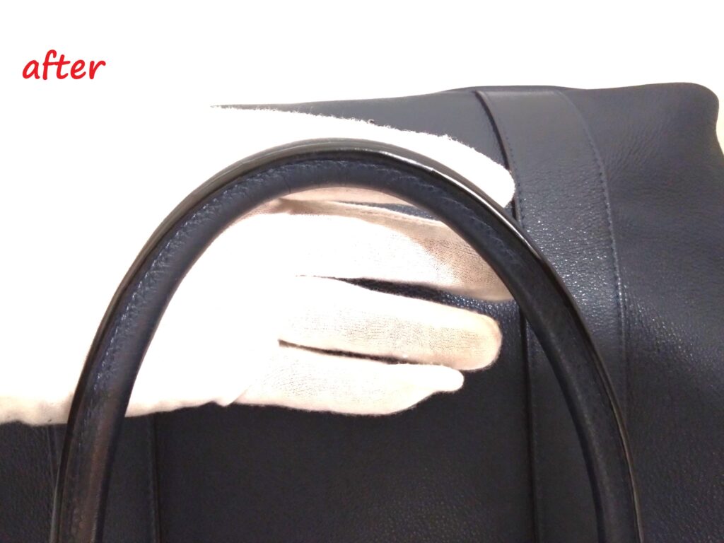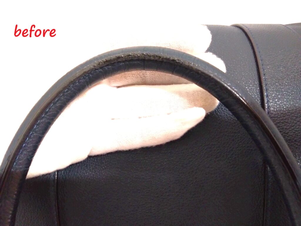 持ち手のコバが劣化し、ベタついていましたが、キレイになりました