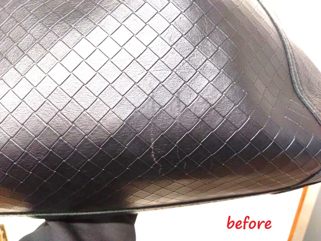 お客様からバッグの外側に傷ができて気になるので修理をお願いしたいとお問合せをいただきました。