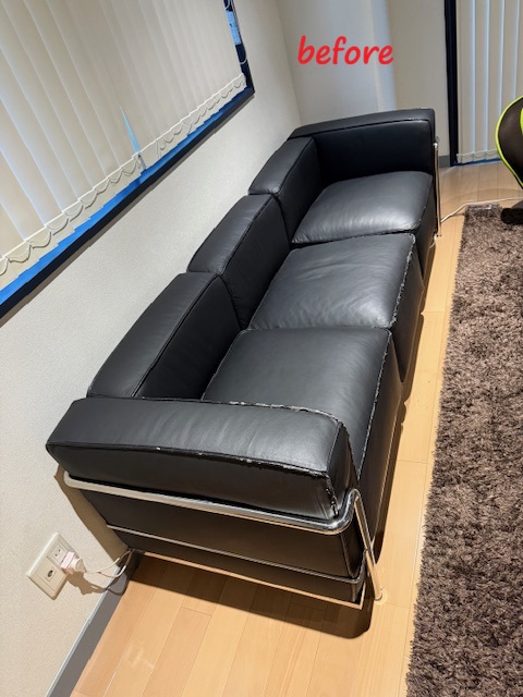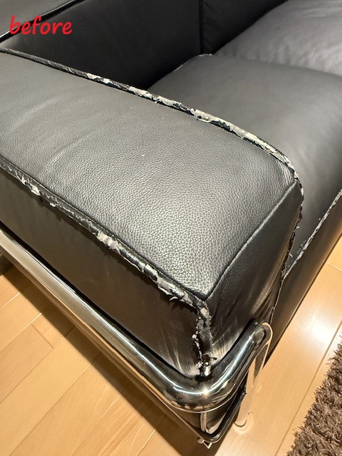 ソファ修理 ル・コルビジェ LC3グランコンフォート 3人掛けソファ パイピング皮 交換施工修理