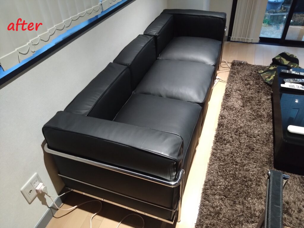 パイピングの皮交換施工修理!ル・コルビジェ LC3グランコンフォート 3人掛けソファのパイピングが綺麗になりました!(^^)!
