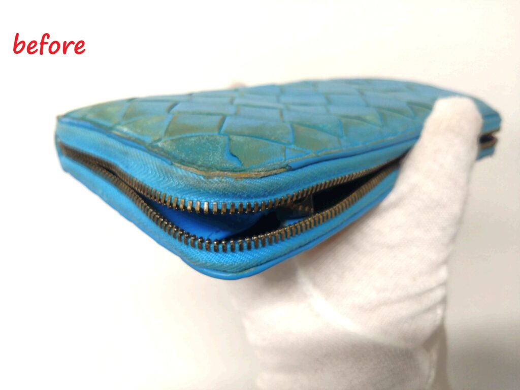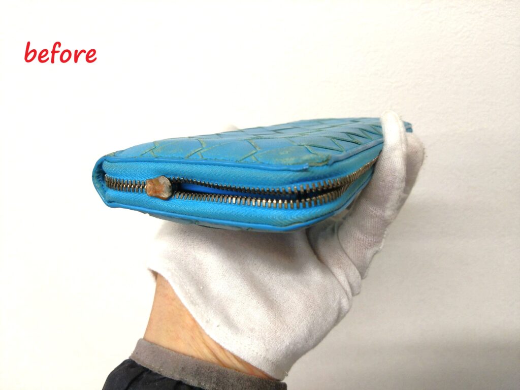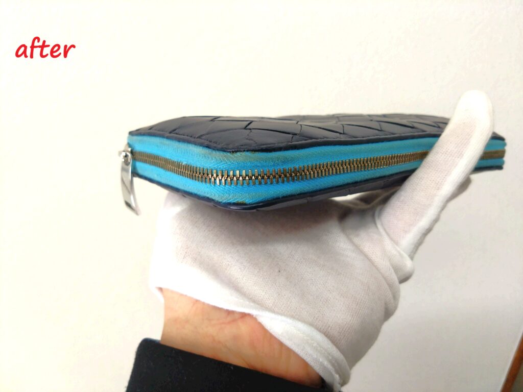 財布修理 ボッテガ・ヴェネタ イントレチャート 長財布 スライダー交換 カラーチェンジ 施工修理