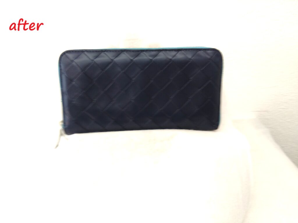 お客様は最初元のお色に染め直しを考えておられましたが、修理が完了したネイビーのバッグをご覧になり、ネイビーのお色が気に入られたのでカラーチェンジのご依頼をいただきました。