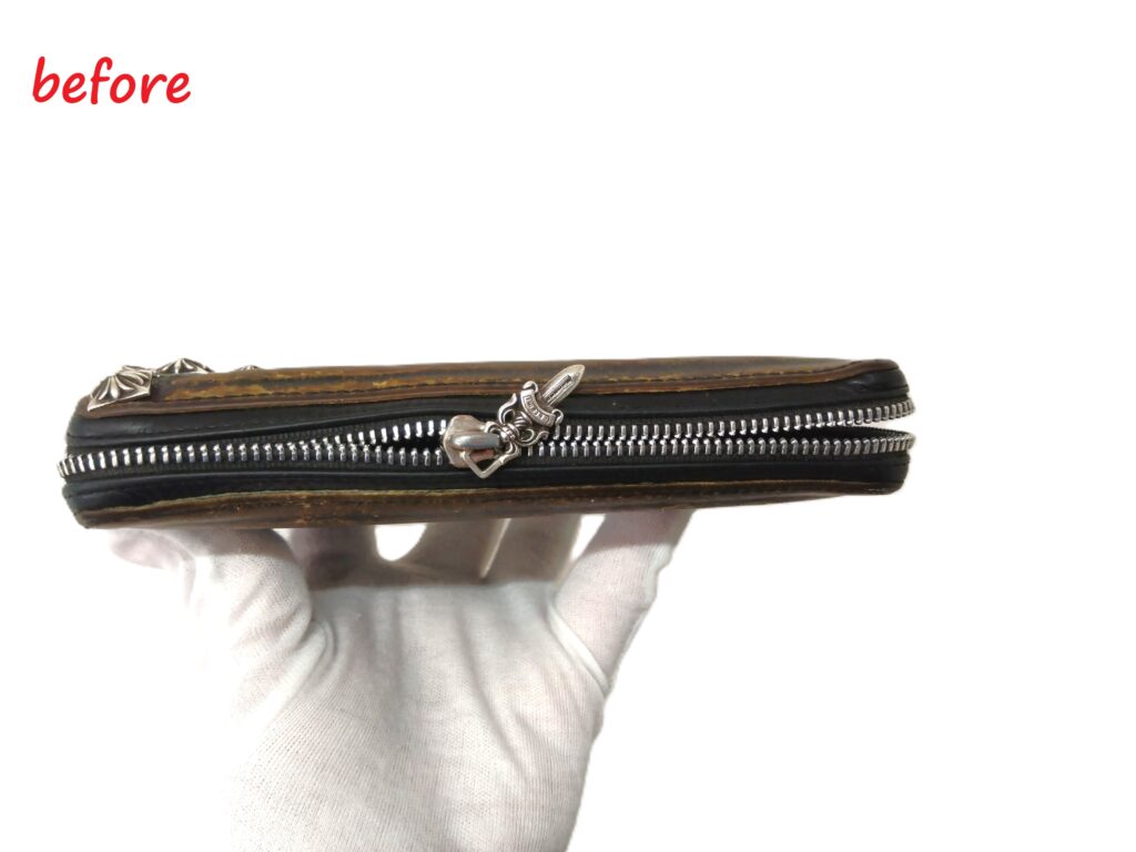 ★クロムハーツ REC F ZIP ゼロピラミッドスタッズウォレット スライダー交換 ひび割れ補修 染め直し修理★