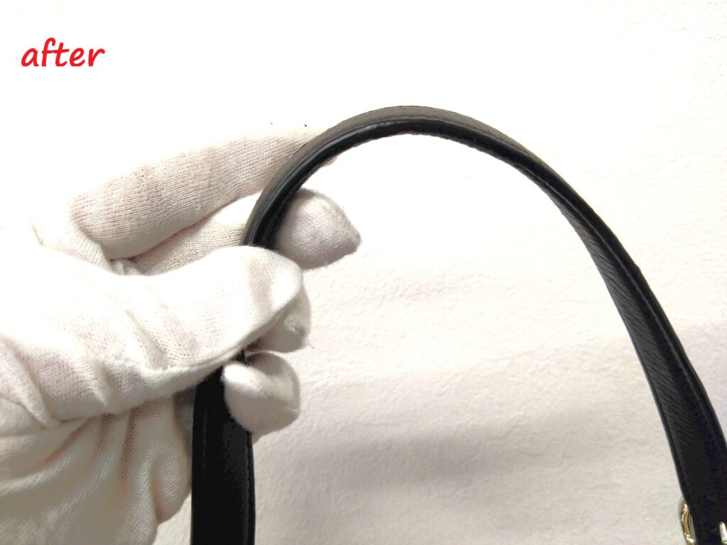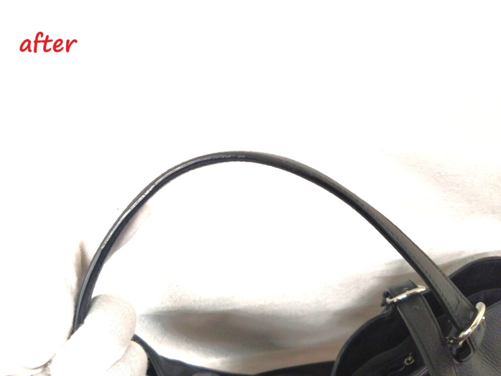 修理内容は、持ち手のコバ再生施工修理です。