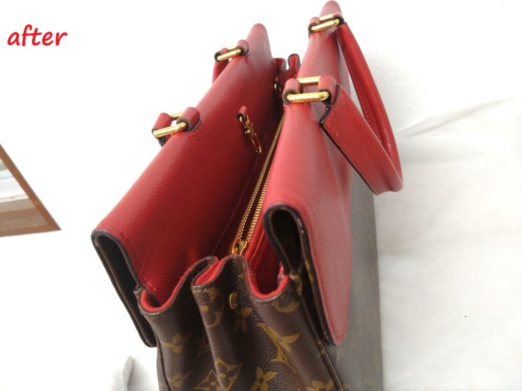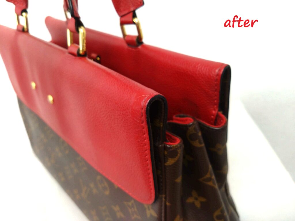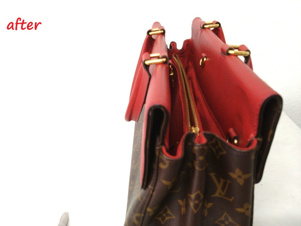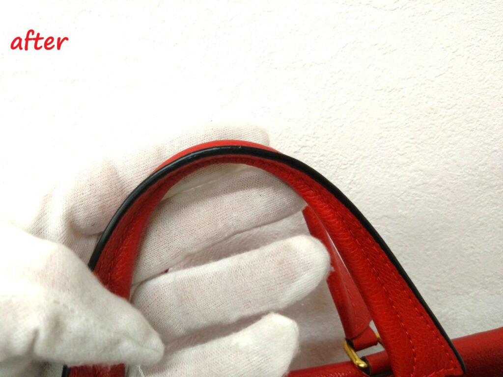 反対側の持ち手もコバが剥がれてしまっている部分がありましたが、綺麗になりました