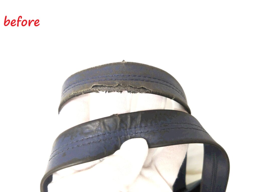 修理内容は、持ち手の革交換&スレ傷補修&染め直し修理です。