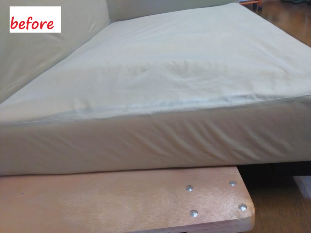 修理内容は、Sバネ 固定具の交換&ウレタン補充&ソファ底の裏張り交換です。