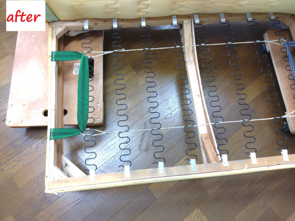 ソファ修理 ソファ 裏張り交換 ウェービングベルト交換 Sバネ 修理