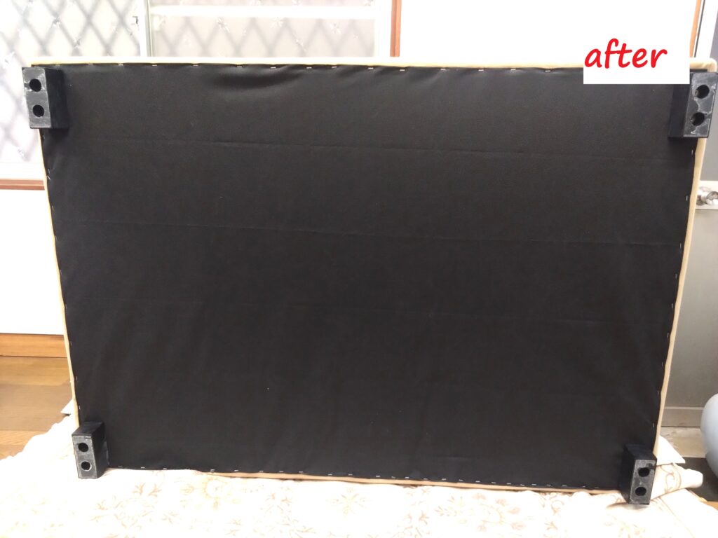 ウレタンを補充し、ファブリックカバーをエアータッカーを使用し取付け。