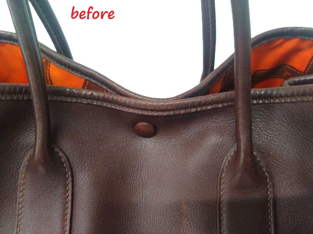 お客様からHermès(エルメス) ガーデンパーティーTPM トートバッグのスレ傷が目立つので修理をお願いしたいとお問合せをいただきました。