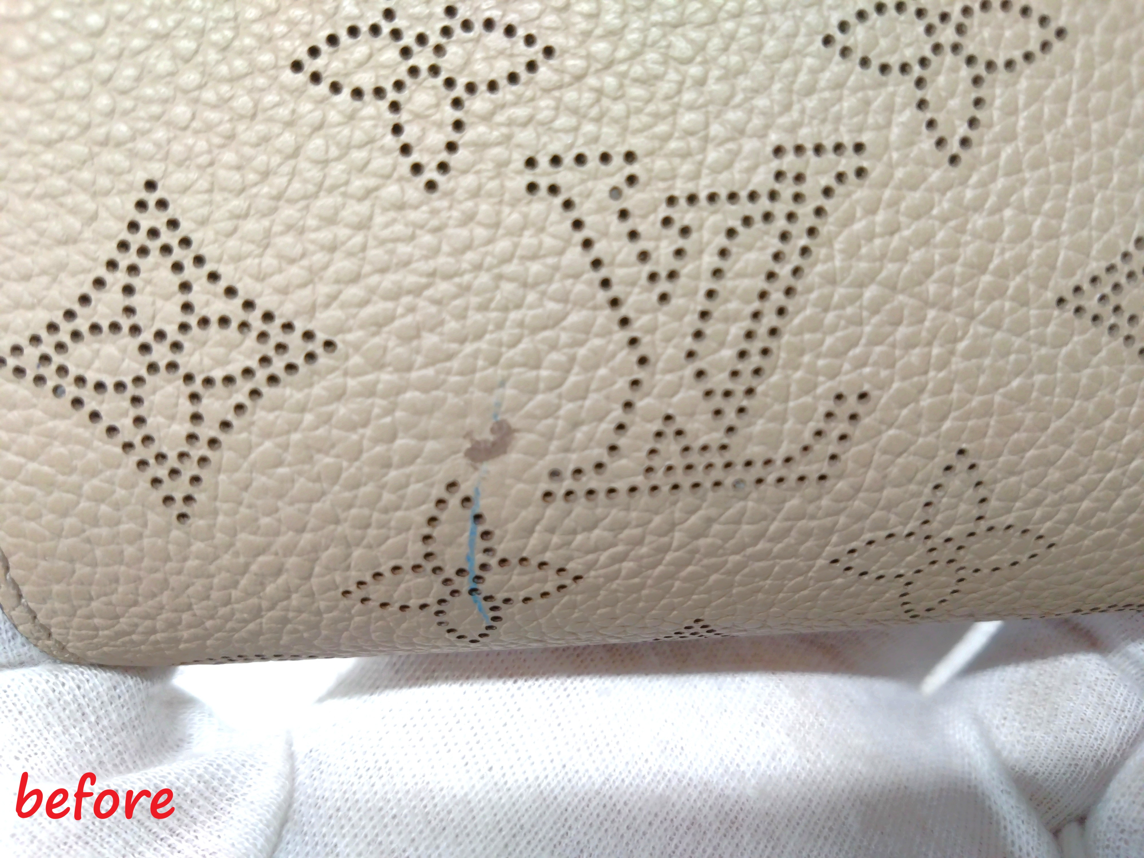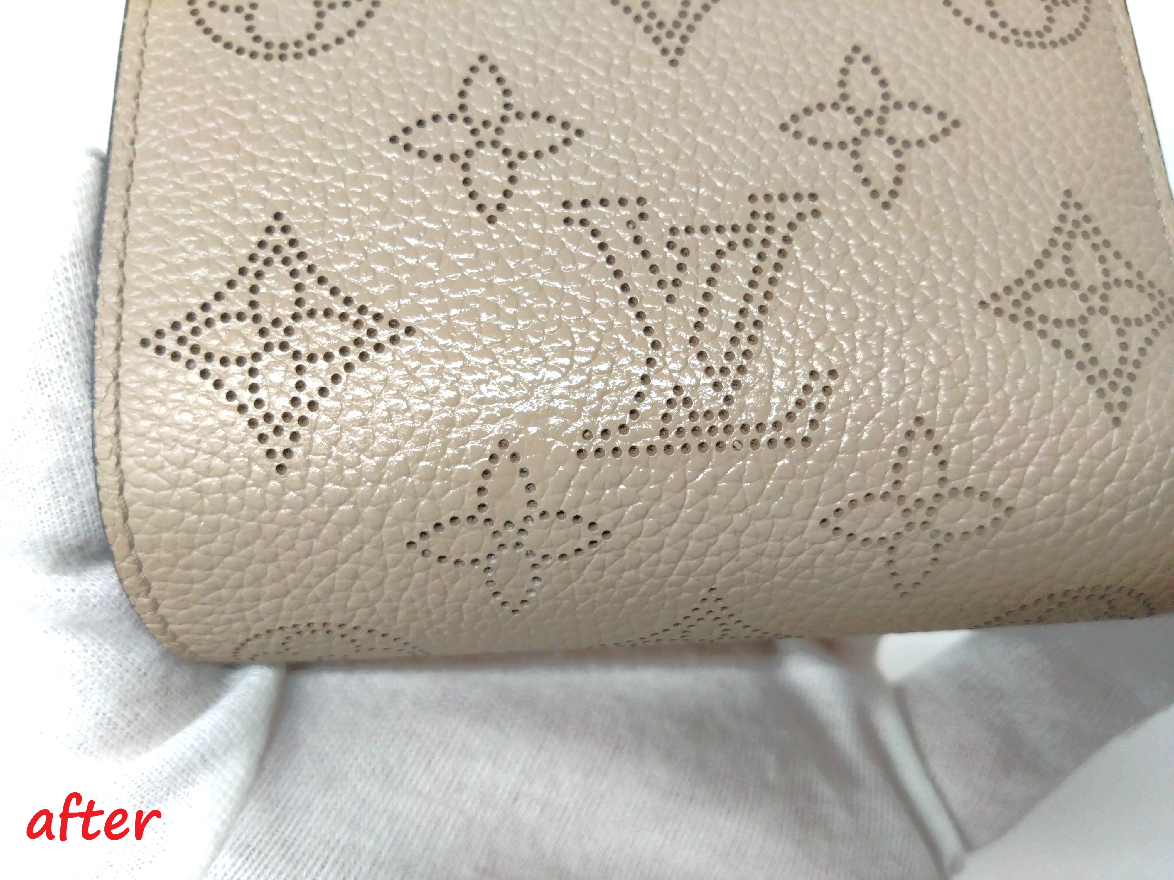 Louis Vuitton ポルトフォイユ・クレア マヒナ 二つ折り財布の色鉛筆の跡をキレイに修理できました。