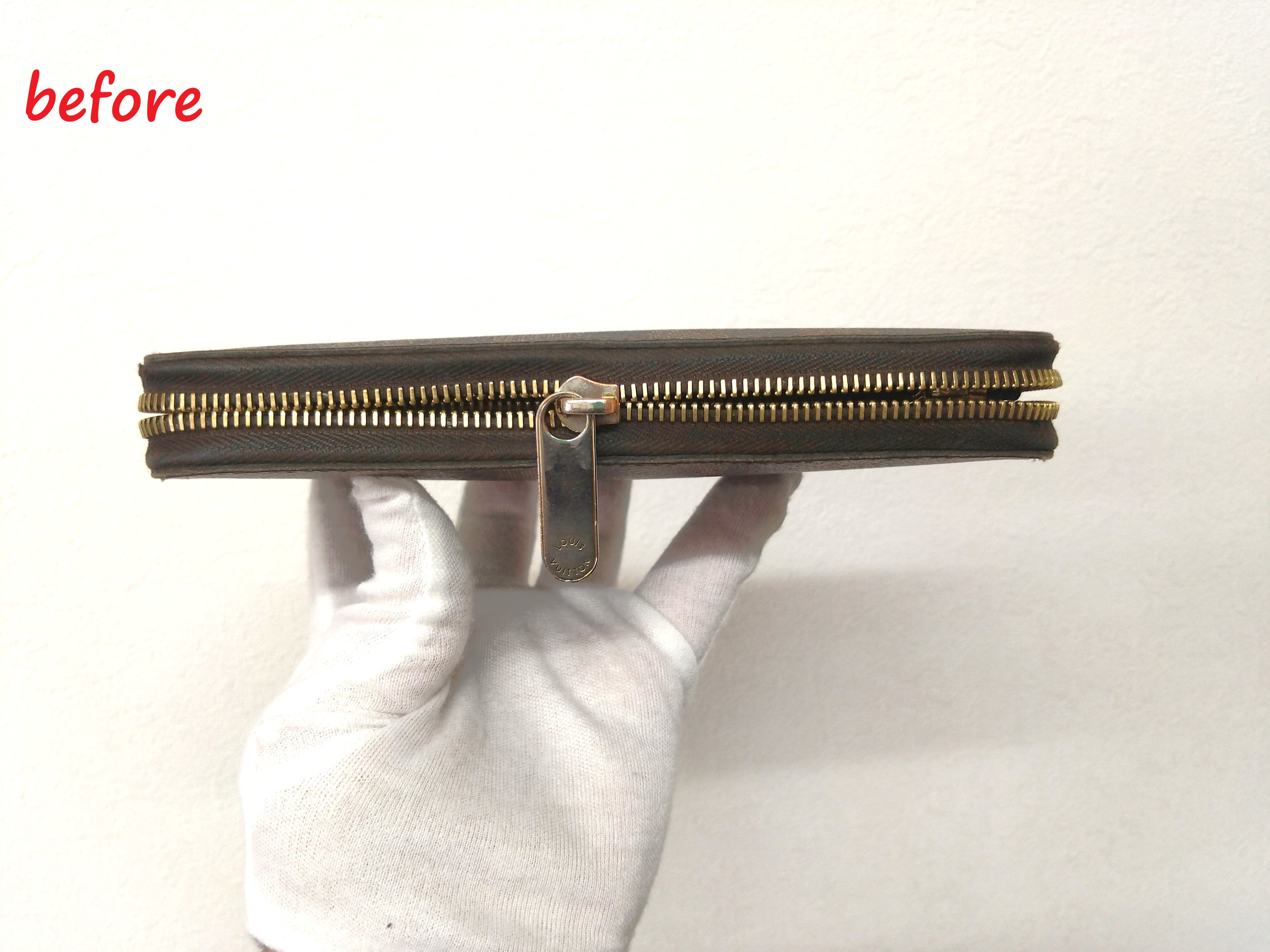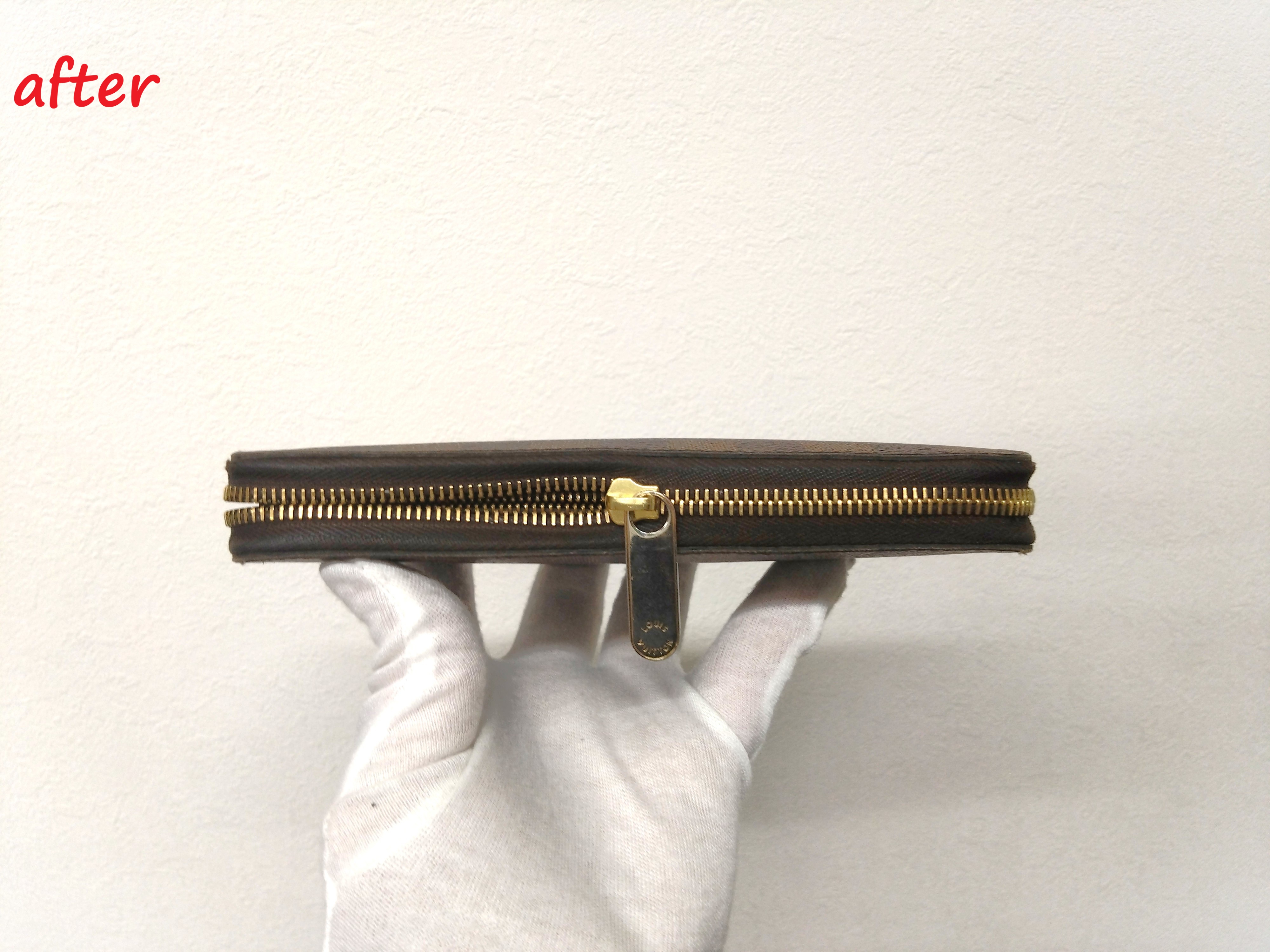 Louis Vuitton ダミエ・エベヌ ジッピーウォレット スライダー交換をキレイに修理できました。