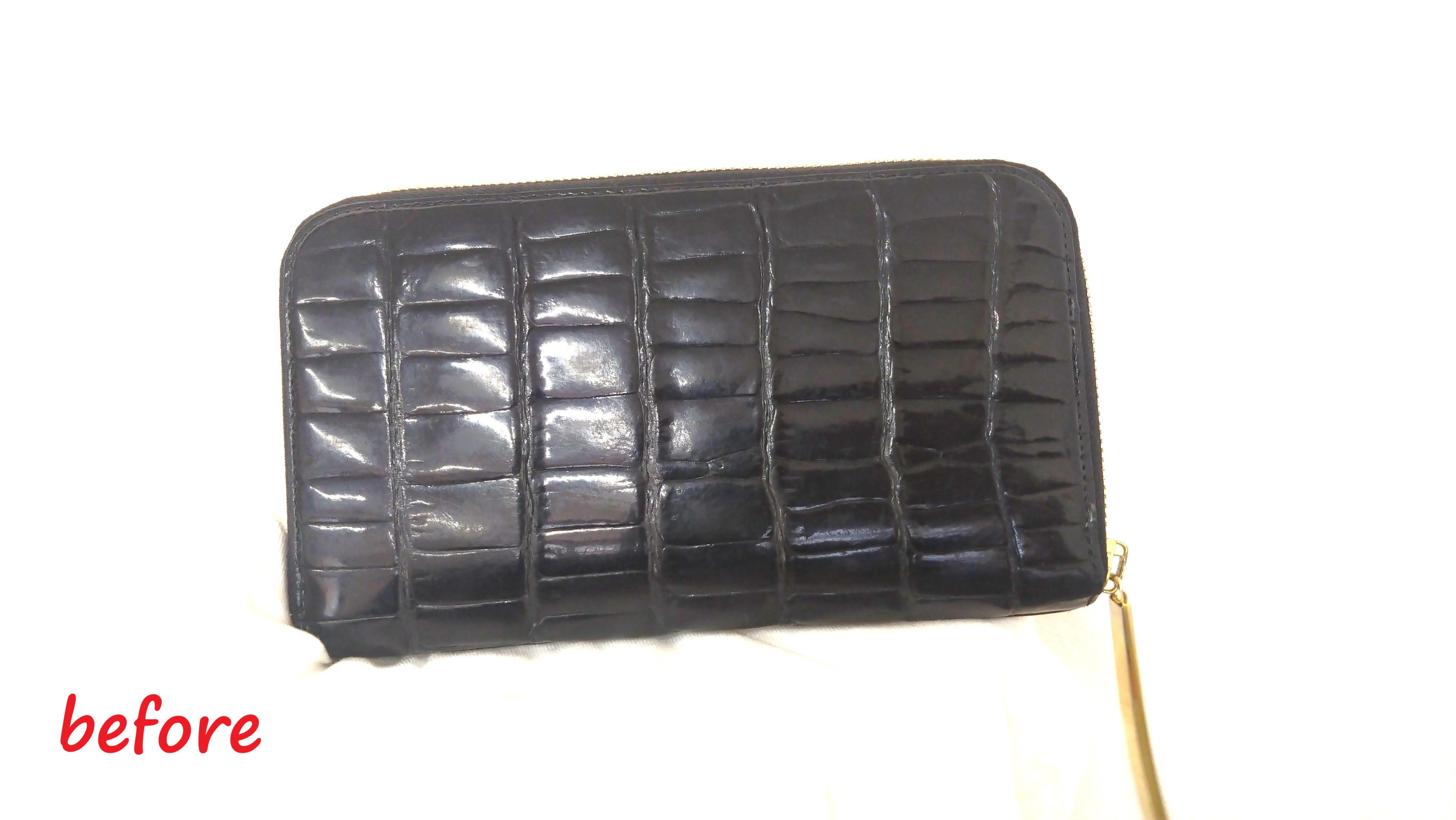 池田工芸 クロコダイル 長財布 色の染め直しをキレイに修理できました。